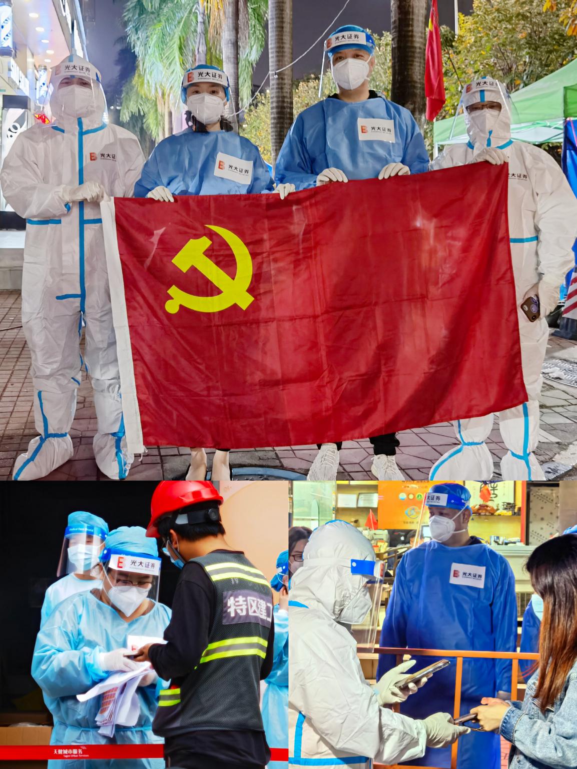 光大證券深圳分公司發(fā)揮基層黨組織戰(zhàn)斗堡壘作用和黨員先鋒模范作用,黨員干部迅速牽頭組建了“光證深分先鋒隊(duì)”,下沉基層抗疫一線(xiàn),黨員同志們換上防護(hù)服、手套和隔離面罩深入蓮花街道多個(gè)社區(qū),全力協(xié)助醫(yī)護(hù)人員做好核酸檢測(cè)的輔助工作。從白天到黑夜的堅(jiān)守,頂著溫差很大的深夜寒風(fēng),保持良好狀態(tài),為廣大群眾的身體健康安全提供了有力保障。一句句暖心的提示、一個(gè)個(gè)忙碌的身影,光大證券深圳分公司的志愿者們,用實(shí)際行動(dòng),堅(jiān)定地守護(hù)著鵬城的人們!