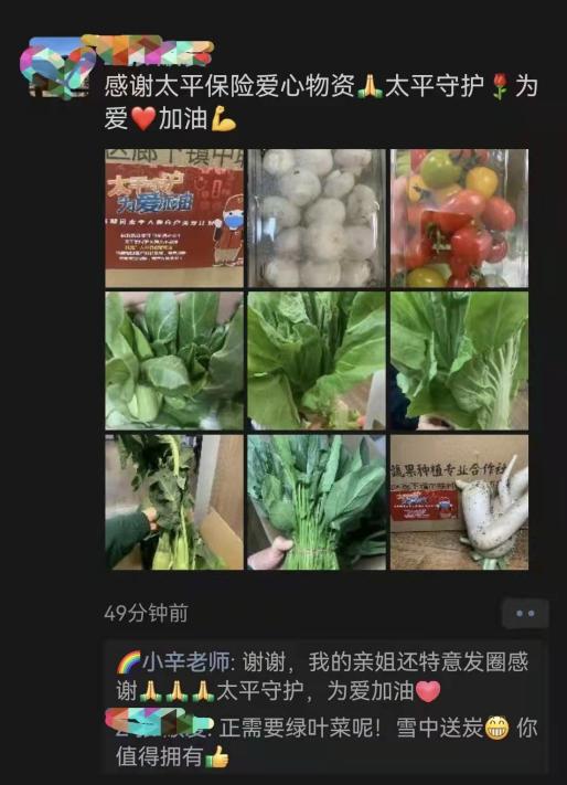 為積極應對疫情,太平人壽上海分公司迅速反應,推出“太平守滬為愛加油”客戶關愛計劃。公司與滬上知名果蔬種植基地合作,將新鮮采摘的蔬果,由持有48小時內核酸陰性證明的太平保險代理人,為客戶朋友直線送達。