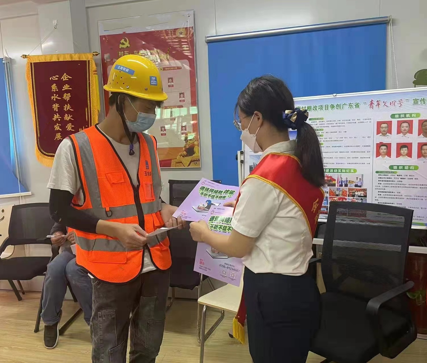 光大銀行深圳分行營業(yè)部以防范電信詐騙為主題,針對分行營業(yè)部周邊核酸檢測點附近進行核酸檢測的群眾開展宣傳,向現(xiàn)場群眾發(fā)放了防詐騙宣傳折頁等宣傳材料,并向廣大群眾講解防疫重要性和方法。