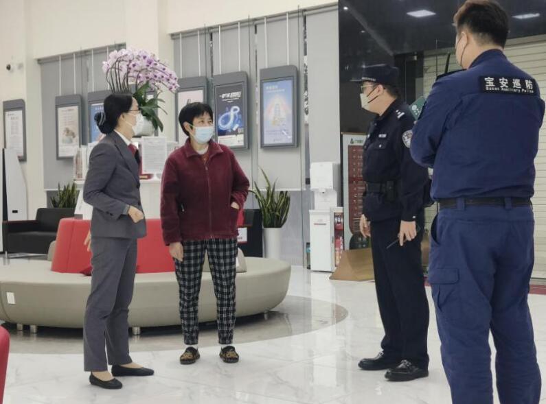 事發(fā)當天17時左右,一位老年客戶氣喘吁吁地走進寶安支行,神色慌張,支行員工田笑竹見狀立刻接待,并主動安撫客戶情緒。通過詢問發(fā)現(xiàn),客戶被盜用了個人信息,銀行賬戶可能存在風(fēng)險。