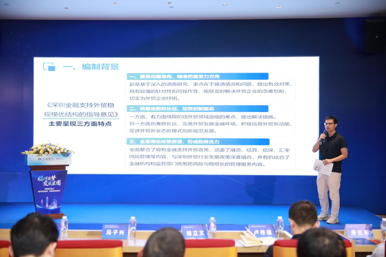 在宣講會上,國家外匯管理局深圳市分局經常項目管理處從加大進出口信貸支持、優(yōu)化跨境結算服務、豐富配套金融支持、抓好工作落實四個方面宣講了金融支持外貿政策,鼓勵銀行提升金融服務水平、積極支持實體經濟發(fā)展。