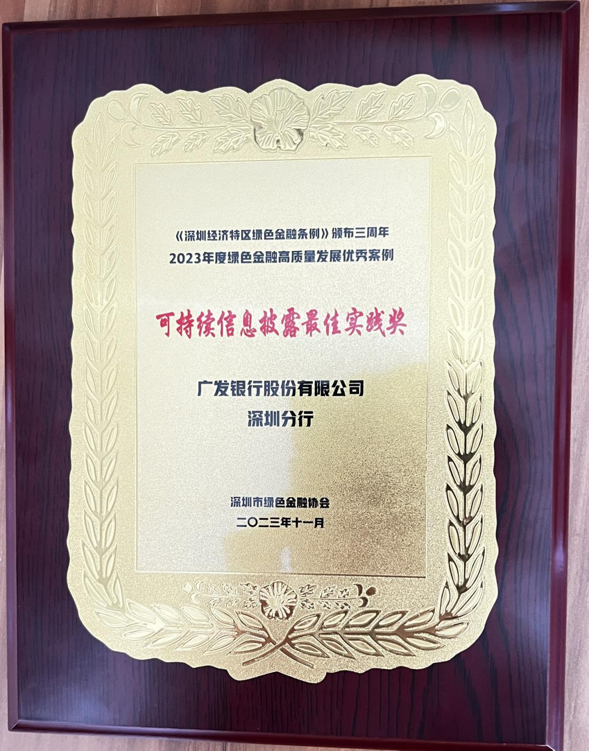 廣發(fā)銀行深圳分行榮獲“2023年綠色金融高質量發(fā)展優(yōu)秀案例”可持續(xù)信息披露最佳實踐獎
