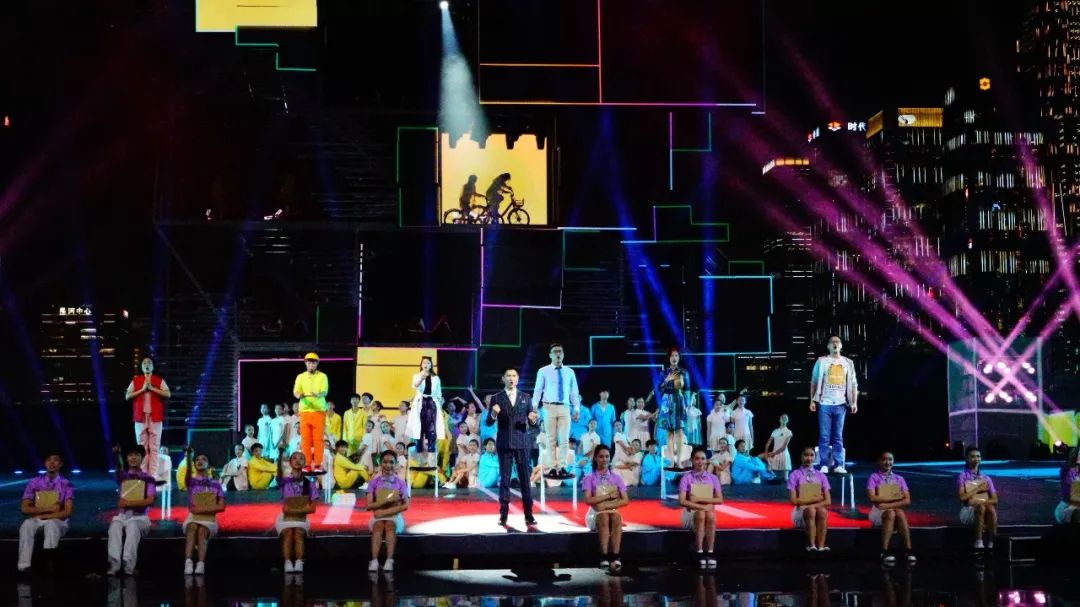主題曲《新的一天》整首歌以小見大,用年輕上班族的拼搏精神體現(xiàn)深圳人共性,引領(lǐng)時代進(jìn)步潮流?!? 拒絕空想冒險/誰不渴望明天/有夢就要實(shí)現(xiàn) ”,交織的夢想成就了深圳?!? 新的一天就在眼前/我的命運(yùn)我要自己改變 ”,改革開放賦予了這個時代勇敢堅(jiān)持的精神。為了排演這個節(jié)目,導(dǎo)演卓依·馬可尼利和全體演員歷經(jīng)了一個月的排練,克服了演出場地露天的高溫,在整個節(jié)目近五分鐘的時長里,展現(xiàn)了新時代青年對于工作的拼勁與堅(jiān)韌、活力和激情,彰顯了剛?cè)嵯酀?jì)、自強(qiáng)不息的深圳精神。