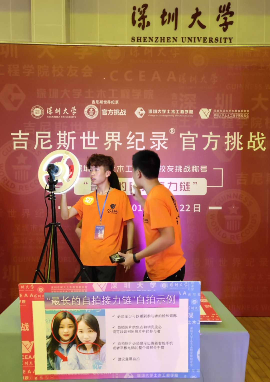 據(jù)悉,為慶祝今年深圳大學建校35周年,深大土木工程學院與深大土木工程學院校友會聯(lián)合組織師生、校友,挑戰(zhàn)“最長的自拍鏈條”吉尼斯世界紀錄挑戰(zhàn)活動。當天所有的自拍照片也將集合形成深圳大學LOGO,永久留存深圳大學檔案館,獻禮深大35周年校慶。校友企業(yè)永鑫集團、南利裝飾、中德誠投資、深大巨成、龍影、大勝得特、特藝達裝飾、深建安工程對此次吉尼斯世界紀錄官方挑戰(zhàn)活動提供了支持。