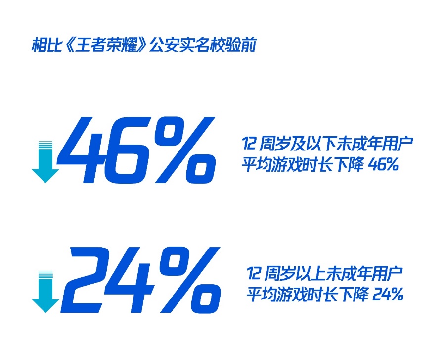 通過公安實名校驗的工作,未成年用戶的身份得到更精準的判斷,平均游戲時長也呈現(xiàn)可見、顯著的下降。