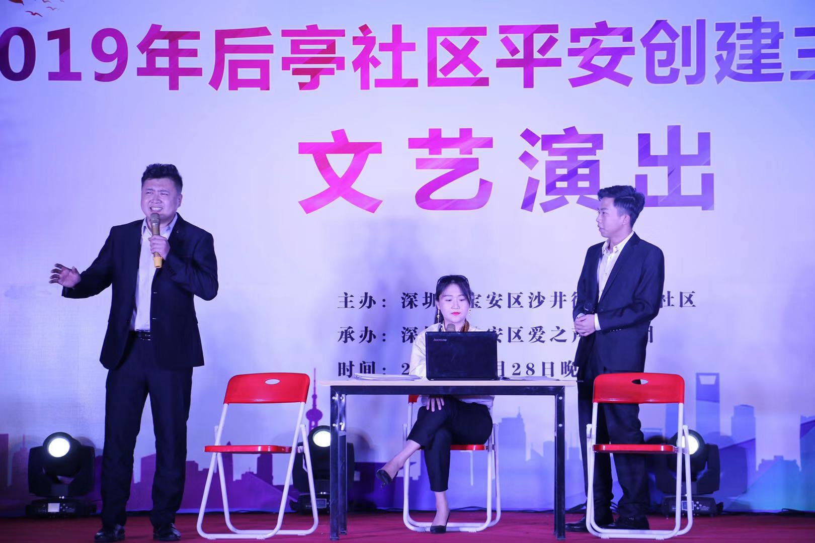 深圳新聞網(wǎng)2019年3月1日訊 (記者 周錦春 通訊員 孫善文)2月28日晚,寶安區(qū)沙井街道后亭社區(qū)在四海云亭廣場舉辦“平安創(chuàng)建宣傳”文藝演出活動,通過生動活潑的方式,推動平安社區(qū)的建設(shè)。此項活動由寶安區(qū)愛之聲藝術(shù)團承辦,約600名社區(qū)居民和轄區(qū)務(wù)工人員參加。