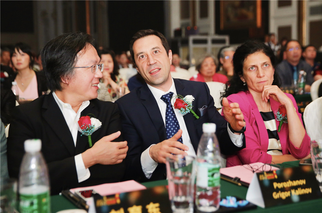 △保加利亞駐中國大使Porozhanov Grigor Kalinov與中俄友好大使、俄羅斯著名影星喜蓮娜為保加利亞DA Architects公司設計師頒發(fā)“最佳商業(yè)空間設計獎”