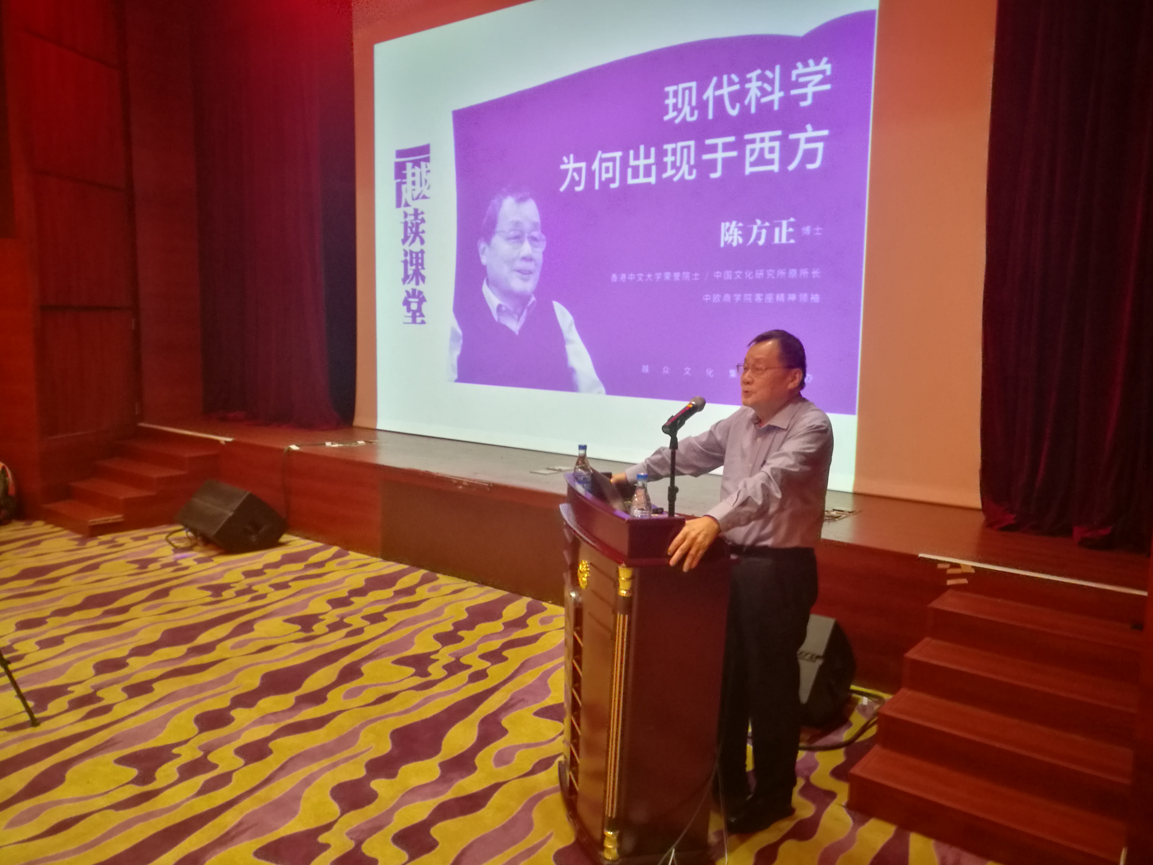 第一課邀請到重量級嘉賓香港中文大學(xué)榮譽(yù)院士、中國文化研究所原所長、中歐商學(xué)院客座精神領(lǐng)袖陳方正教授主講:“現(xiàn)代科學(xué)為何出現(xiàn)于西方”。據(jù)介紹,這是陳方正教授第一次在深圳舉辦公開講座。深度探究為什么中國科學(xué)落后于西方?西方科學(xué)的發(fā)展有什么特征?三個文明中的西方科學(xué)傳統(tǒng)如何傳承?等系列問題,以極高的思維方式剖析歷史,講述國內(nèi)外的科技發(fā)展歷程。