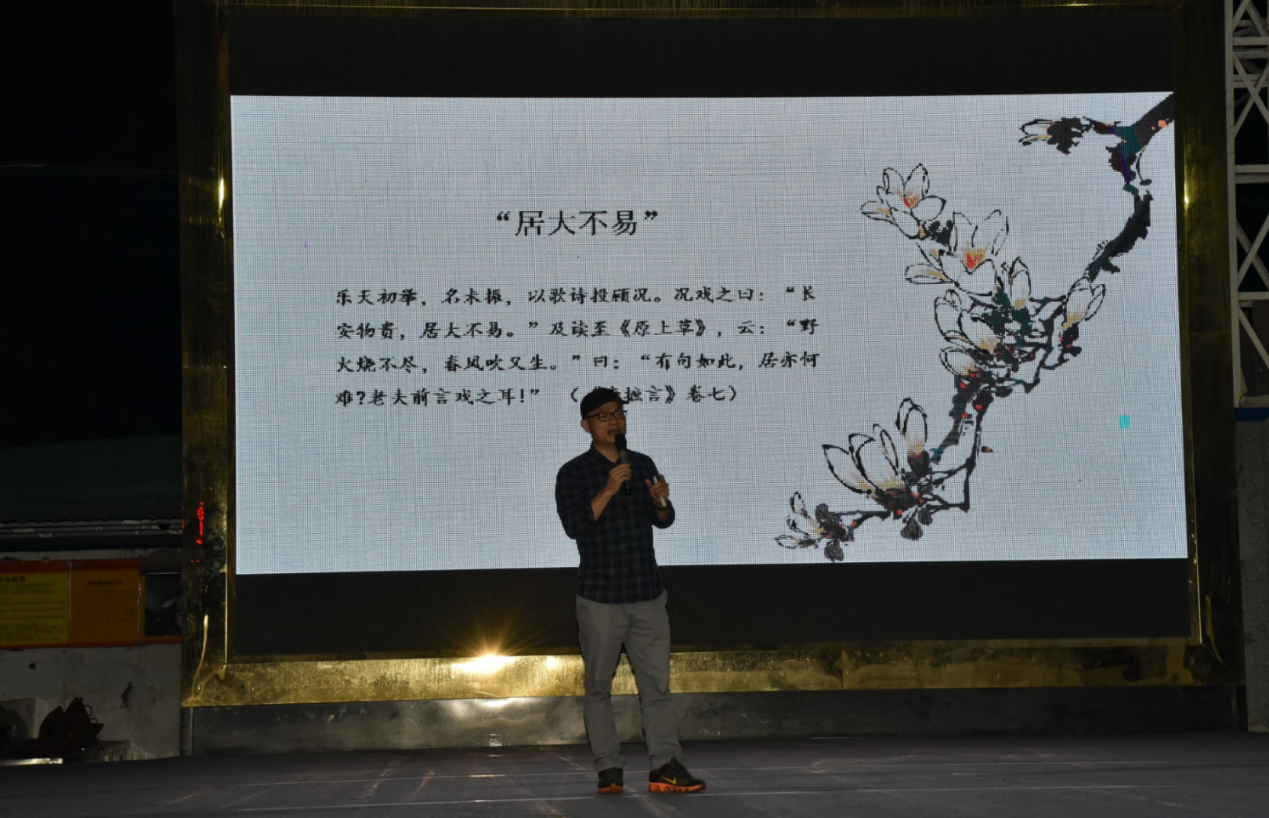 深圳新聞網訊 5月29日晚上,“新時代中華優(yōu)秀傳統(tǒng)文化進社區(qū)”系列活動第三場公益文化講座之“月點波心一顆珠——白居易的詩意人生”在深圳市寶山技工學校寶山大舞臺拉開帷幕,由愛詩家創(chuàng)始人劉建彪帶領聽眾一同走進“詩王”的詩意世界,感悟其至情至性。