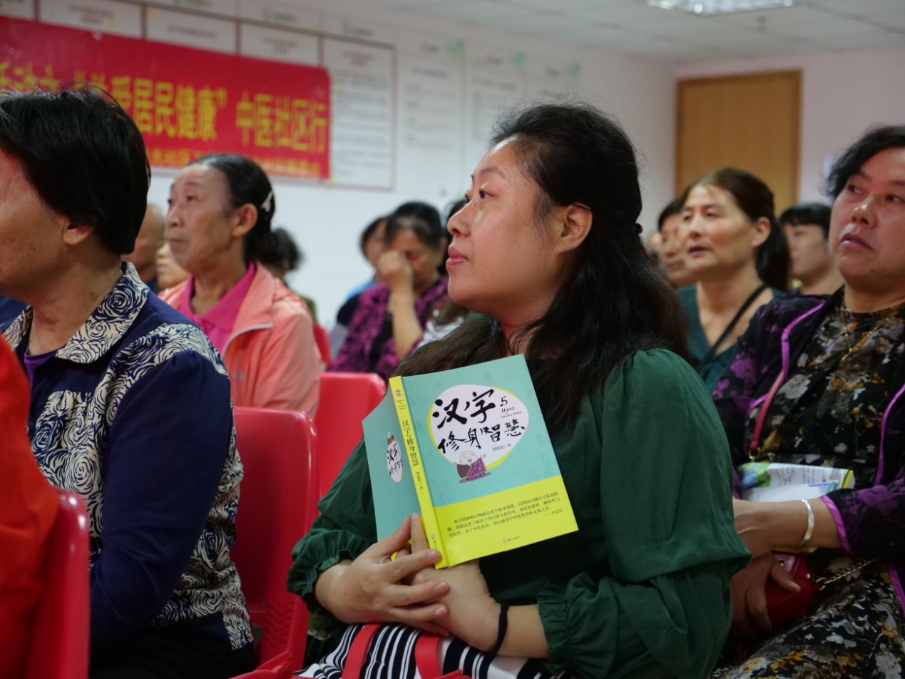活動現場,珠光社區(qū)的叔叔阿姨們坐得整整齊齊,人手一本《深圳市民公約》冊子和《漢字與修身智慧》學習資料,認真地翻閱著。