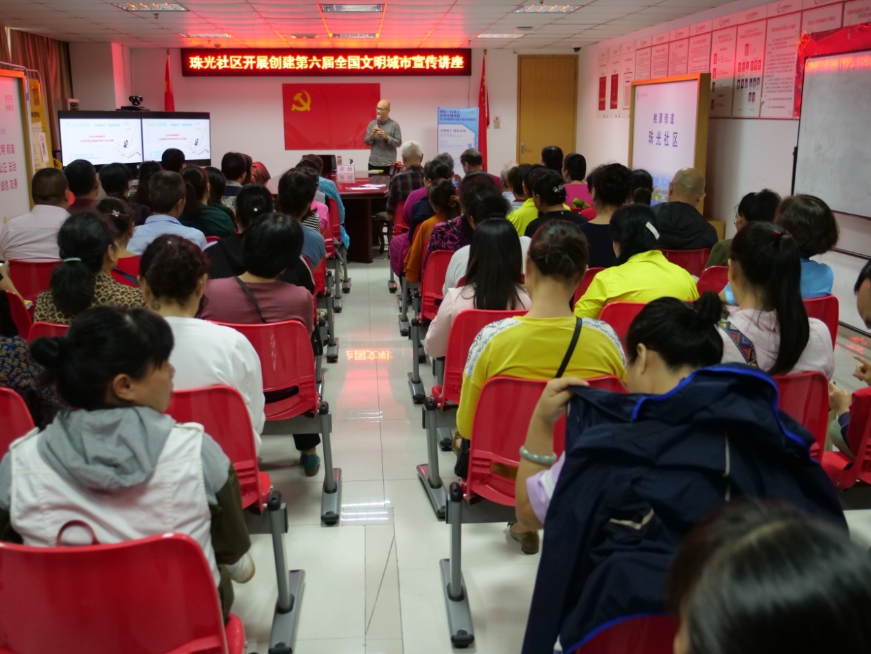 最后,劉建彪老師高度表揚了珠光社區(qū)居民認真專注的聽講態(tài)度,他指出,尊師好學也是“文明”的體現,并由衷感謝珠光社區(qū)黨委對本次活動的有序組織與安排,贊揚他們對城市文明創(chuàng)建工作的重視與支持。