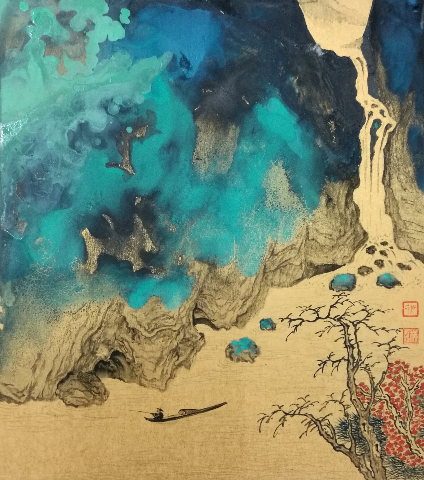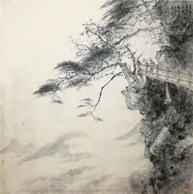 其實(shí),吳琳兄是一位才華全面的畫家,不獨(dú)山水流芳,人物花鳥亦強(qiáng)。見過(guò)他的巨幅山水,意境古拙開張不輸前賢;見過(guò)他的花鳥魚蟲,似有白石之風(fēng)吹過(guò);見過(guò)他的白描觀音,覺大千風(fēng)骨猶在。“走過(guò)的路,終成前行的寶鑒”!看過(guò)吳琳的來(lái)路,今番小山水“來(lái)襲”,似為意料之中的事。