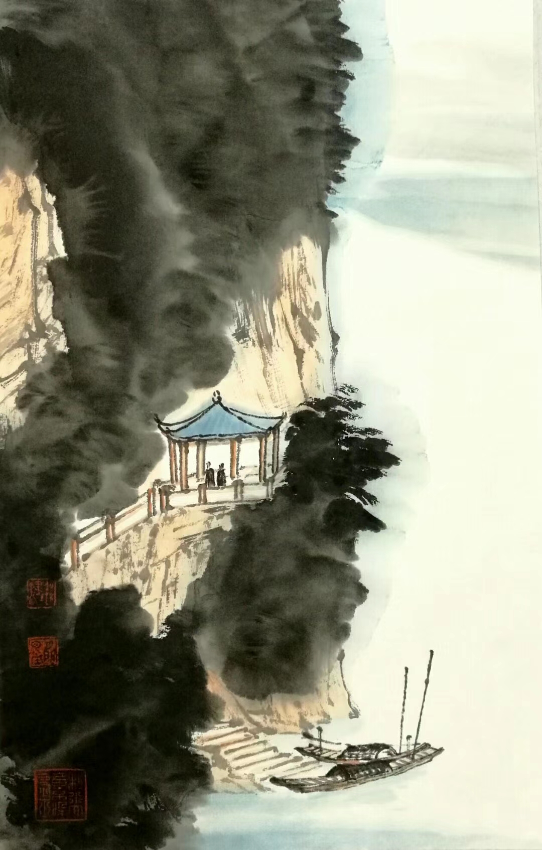 智者說(shuō),人生有三重境界:第一重,看山是山,看水是水;第二重,看山不是山,看水不是水;第三重,看山又是山,看水又是水。吳琳初以寫實(shí)為主,時(shí)常云游四方、畫稿盈笈,得意妙筆不絕如縷;繼而參以己意,畫風(fēng)微變,花鳥魚蟲在造境中盛開、飛翔、游嬉,精品力作吸 人眼眸;今番小山水,神來(lái)之筆頻頻,寫實(shí)乎?寫意乎?寫心也!或許,是吳琳的畫境暗合了人生三境吧。竊以為,寫實(shí)是一眼之境;寫意是一時(shí)之念;寫心乃一生之魂?;蛟S,已過(guò)天命的吳琳兄,欲拋脫生活之牢籠,直抵生命的本真,心生禪意,境界便升至新的維度。如此,畫境安在?自然隨心,有心則為之,無(wú)心則諉之。老子言“無(wú)為而無(wú)不為”,蘇軾言“無(wú)意于佳乃佳”,想必隨心之境可助吳琳兄“一臂之力”,畫境、藝境自可更上層樓。