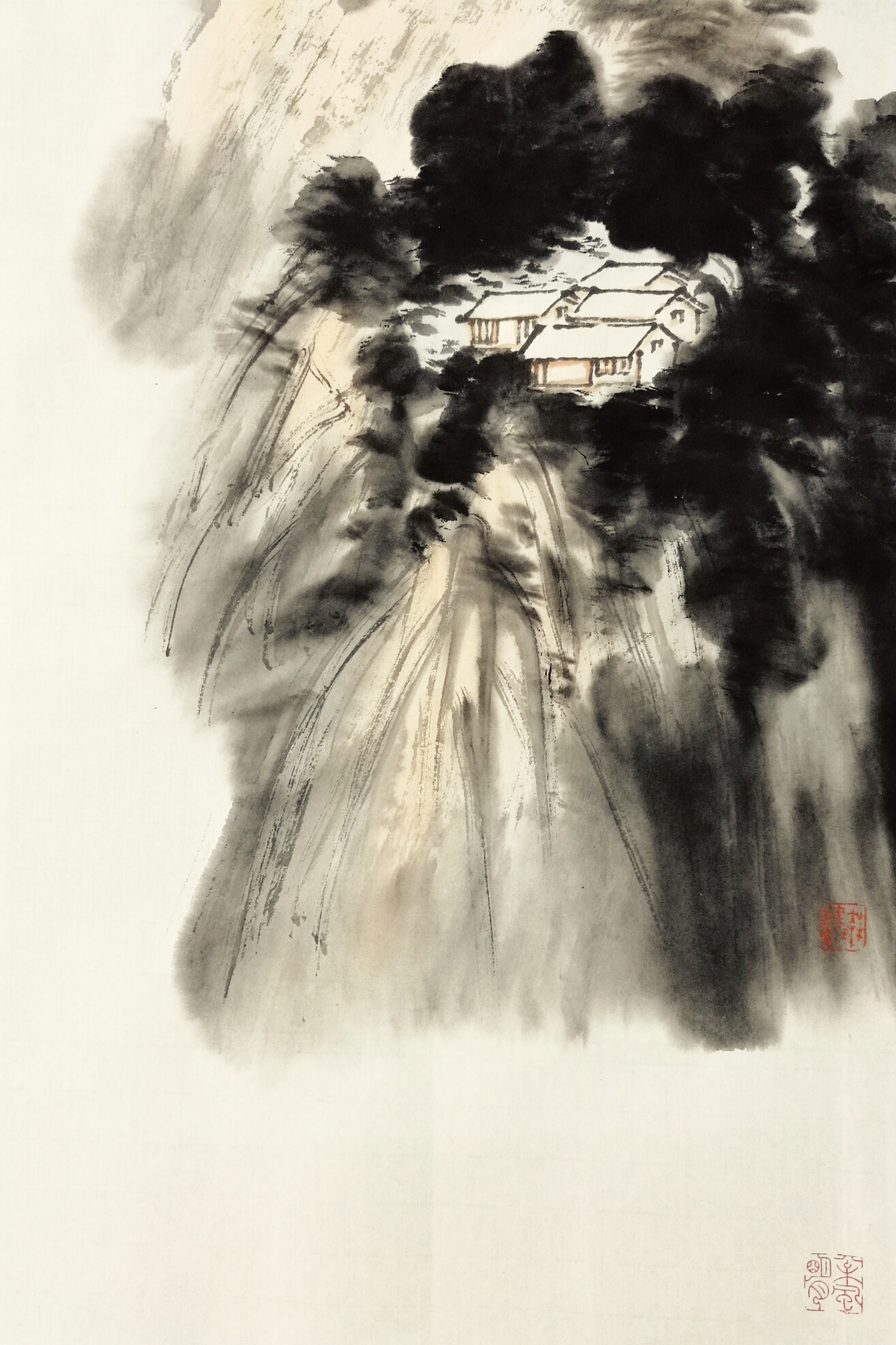 巨幅山水《武當(dāng)山煙雨》140*47cm