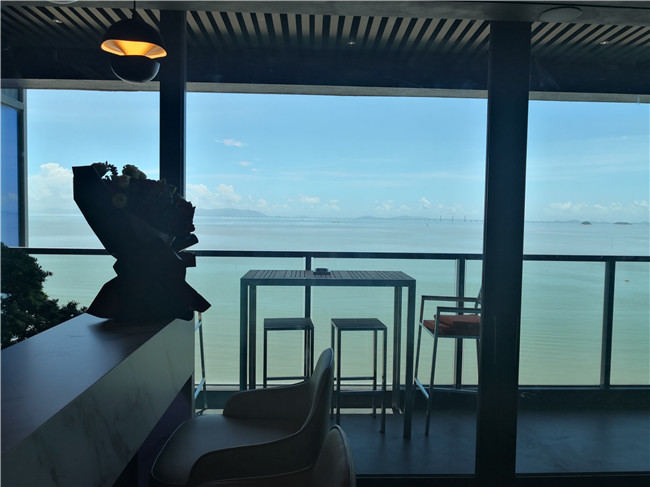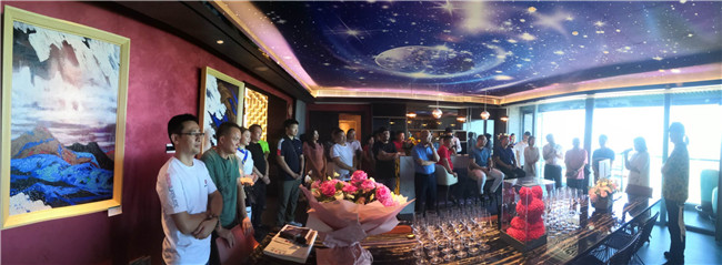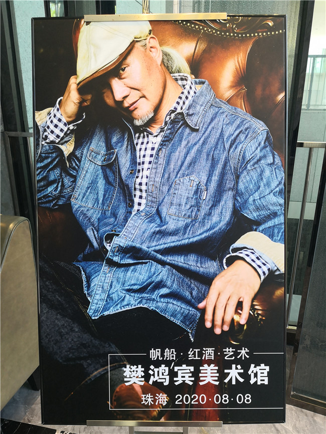 樊鴻賓美術館座落在珠海市香洲區(qū)內,旁接情侶路,目眺鳳凰灣,一派浪漫情調,真是一塊滋養(yǎng)藝術的風水寶地。展館所在的天宸大廈十六樓。面朝大海,視野開闊,藍天白云,碧海揚帆,讓人心曠神怡。與此同時,室內樂聲輕伴、紅酒飄香,此景、此情映襯之下,緩步巡看展品,或細細靜賞佳作,自然而然有一份莫名舒適的藝術享受。