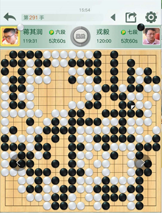 【賽場花絮】本輪比賽中,下出了“四劫循環(huán)”無勝負的棋局。此局出現(xiàn)在上海建橋學院隊對陣日照山海大象隊的主將之戰(zhàn)中,上海主將李維清與日照主將江維杰下出“四劫循環(huán)”,按規(guī)定,本局判為無勝負。對局停止時,雙方都各剩最后一次讀秒。兩人立即進行加賽。中國圍棋隊領隊華學明發(fā)朋友圈稱贊棋手具有職業(yè)風范。
