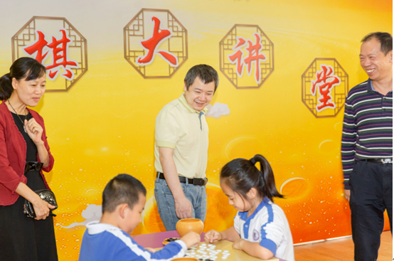 世界冠軍羅洗河、時越指導小朋友對局。