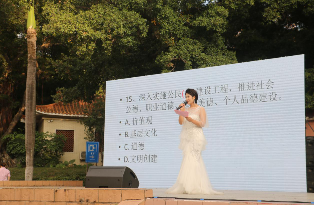 演出在歡快的《永唱中國夢》歌舞中拉開了帷幕;懷舊老歌《紅歌聯(lián)唱》經(jīng)典又回味,越聽越喜歡;特色節(jié)目《李玉剛模仿秀》反串女聲,一開口驚艷全場……整場演出高潮迭起,精彩不斷,觀眾們無不拍手鼓掌,歡呼叫好。節(jié)目主持人在每個節(jié)目之間還以有獎問答的形式,宣傳黨的十九屆五中全會的內(nèi)容,觀眾們踴躍參與,大家都說,這樣喜聞樂見的活動親切,接地氣,不妨多來幾場。目前,西鄉(xiāng)街道黨工委正在打造“學(xué)習(xí)強國”示范街區(qū),“今天,你學(xué)習(xí)了嗎”已成為時尚的見面問候語。(孫善文)