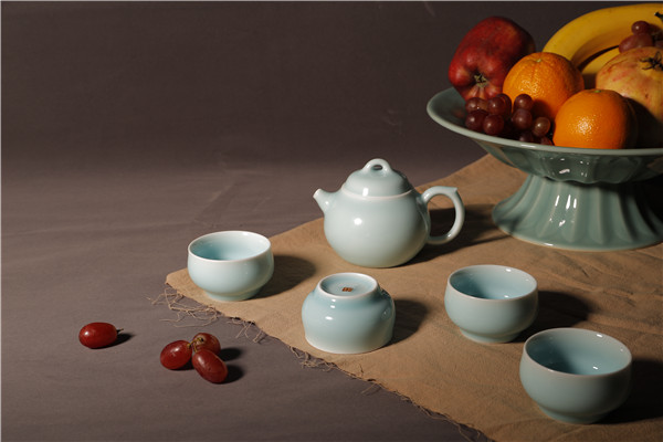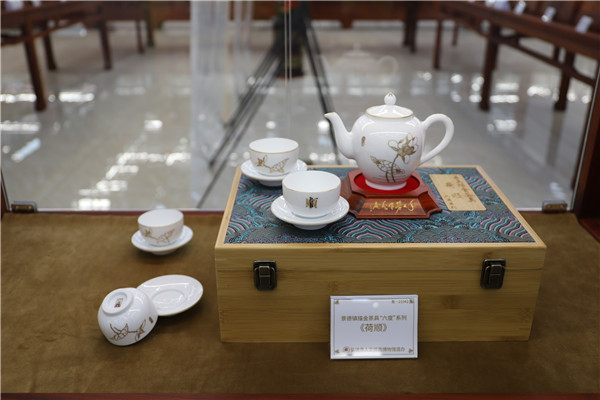再就是印順大和尚倡意定制的帶有濃厚佛教色彩的生活用具,如紫砂、青瓷茶具套組《舍得》,景德鎮(zhèn)描金茶具“六度”系列《荷順》,均有以佛教意象蓮花為內(nèi)容的圖案或造型,讓人在使用時(shí)頓生清靜心、倍感佛法力,或可為信眾修行悟道助一臂之力。
