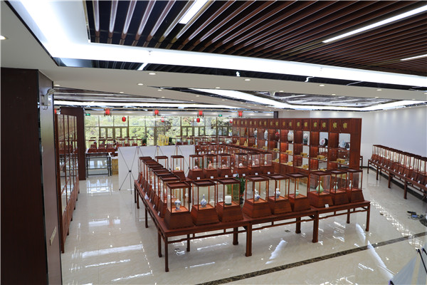 值得重點(diǎn)介紹的是,在珍品陳列區(qū),有不少原全國(guó)人大常委會(huì)副委員長(zhǎng)李鐵映同志親自創(chuàng)作的工藝美術(shù)品。一是“鐵映十八式紫砂”,是李鐵映先生自身藝術(shù)文化修養(yǎng)的結(jié)晶。他以青銅、古玉等重器國(guó)寶為模,以詩(shī)詞、文論為識(shí),以宜興獨(dú)有的紫砂材質(zhì)和豐富的工藝手段,吸取中國(guó)各種傳統(tǒng)工藝的特點(diǎn),創(chuàng)意了具有民族特色的簡(jiǎn)潔古雅的紫砂新藝術(shù),精妙構(gòu)思,博觀約取,歷數(shù)年制成。2010年元月,李鐵映先生將“鐵映十八式紫砂” 捐贈(zèng)一套給國(guó)家博物館。二是限量仿制清宮琺瑯彩瓷?,m瑯彩瓷創(chuàng)燒于康熙,興盛于雍正、乾隆兩朝,之后便沉潛史海,難覓芳蹤。李鐵映先生得知后,高度重視,數(shù)度深入相關(guān)博物館和景德鎮(zhèn)院校、企業(yè)調(diào)研,組織成立“紫玄琺瑯瓷研究室”,確立了“發(fā)掘保護(hù)、繼承發(fā)展”的指導(dǎo)思想,提出“仿古不泥古,仿清更超清”仿制要求,經(jīng)過(guò)成百上千次的反復(fù)試驗(yàn),最終成品,既具有清代康雍乾琺瑯彩瓷的藝術(shù)品味和精神風(fēng)貌,但在材質(zhì)、工藝、技術(shù)等方面有所超越,可以說(shuō),每件作品都能集工藝價(jià)值、文化價(jià)值、歷史價(jià)值、藝術(shù)價(jià)值于一身。