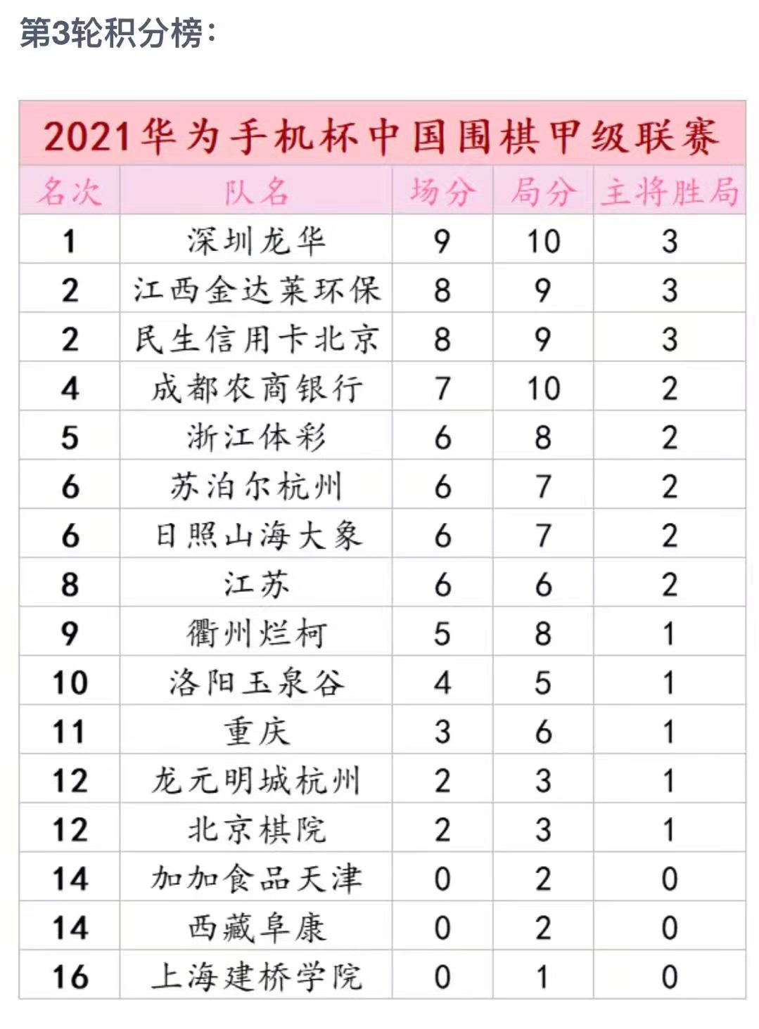 2021華為手機(jī)杯中國圍棋甲級(jí)聯(lián)賽常規(guī)賽第三輪西藏阜康1:3深圳龍華