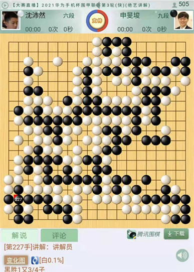今日比賽中,二臺(tái)的主將時(shí)越先贏,是盤,時(shí)越執(zhí)黑主將對(duì)陣姜東潤(rùn)。行至中盤,白棋侵消上邊黑棋模樣,黑棋攻擊手法略嫌急躁,局面復(fù)雜。戰(zhàn)斗蔓延到左上時(shí)候,白棋處理眼位不當(dāng),導(dǎo)致左上白棋需要多花一手棋做活。被黑棋中央搶先動(dòng)手吃住大龍。隨后,四臺(tái)快棋外援申旻埈繼昨日后又一次險(xiǎn)勝,可謂好運(yùn)連連。本局申旻埈執(zhí)黑對(duì)陣商借到西藏隊(duì)的沈沛然。白棋開局至中盤超水平發(fā)揮,局面一度白棋勝勢(shì)。官子時(shí)候黑棋在白空里試應(yīng)手,白棋讀秒中忙中出錯(cuò),下出緩手應(yīng)對(duì)失誤,被黑棋便宜了接近十目棋,導(dǎo)致局勢(shì)逆轉(zhuǎn)黑棋幸運(yùn)獲勝。