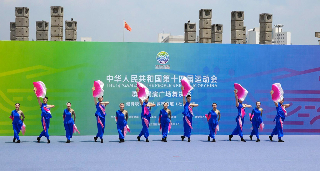 本屆全運會首次設置群眾展演項目廣場舞、廣播體操、健身氣功、太極拳4個大項,共766支隊伍6800多人參賽。廣場舞設健身舞、健身秧歌(鼓)、廣場龍舞三個分項,健身秧歌(鼓)分項線上展演及網(wǎng)絡投票于8月8日開始,8月22日結(jié)束,8月25日進行線下評審。
