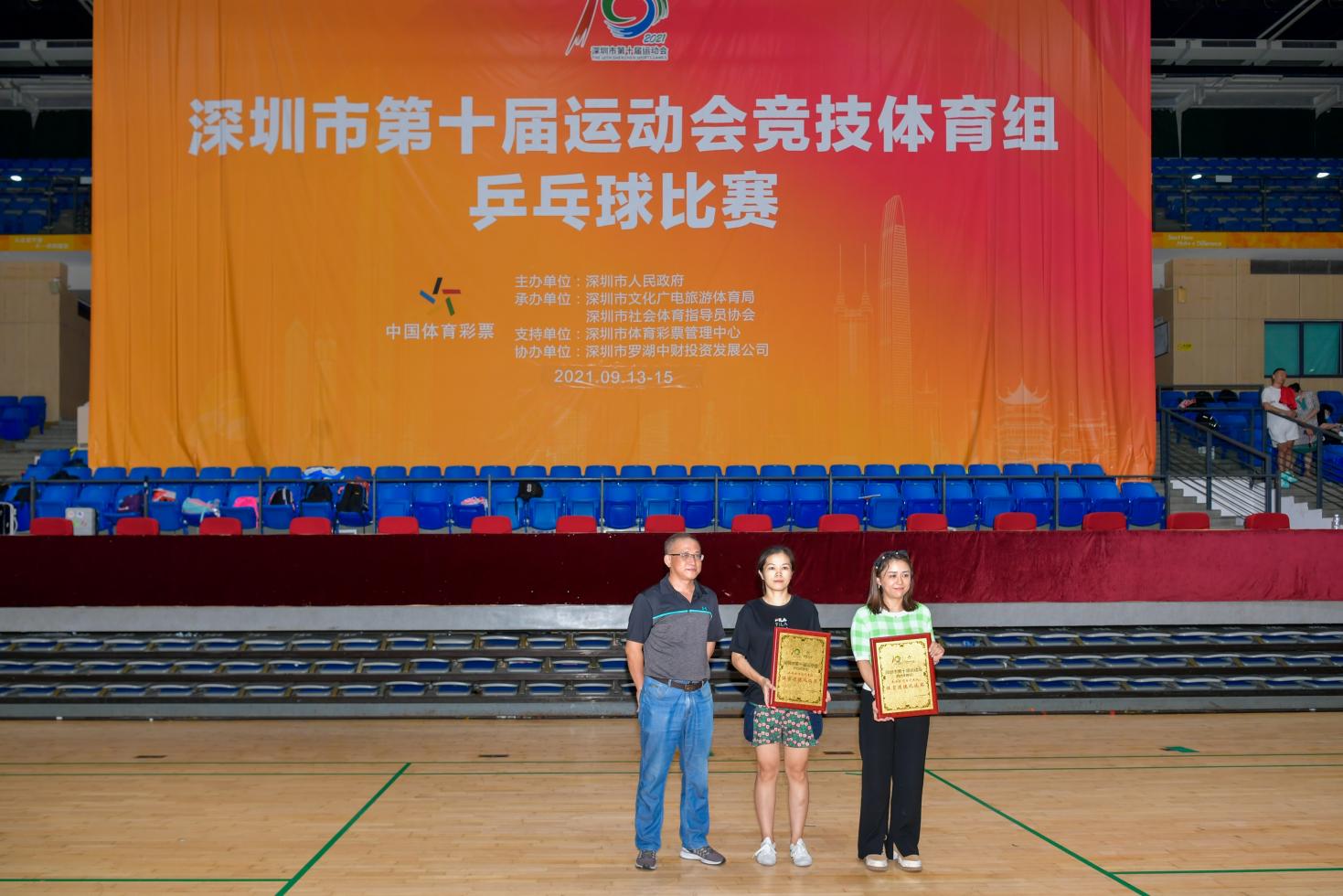 深圳市羅湖中財(cái)文體場(chǎng)館管理部部長李志軍(左1 )為獲獎(jiǎng)運(yùn)動(dòng)員頒獎(jiǎng)