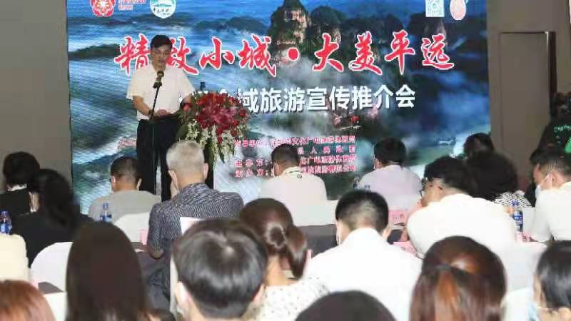 深圳市文化廣電旅游體育局張道新處長、深圳市南山區(qū)文化廣電旅游體育局李亮科長、深圳市旅游協(xié)會常務(wù)副秘書長周泉霖、深圳市旅行社行業(yè)協(xié)會會長鄒峰,平遠縣人民政府副縣長藍?;⑵竭h縣深圳區(qū)域招商隊隊長曾祥東、平遠縣文化廣電旅游體育局局長李勝,來自平遠相關(guān)單位、平遠各旅游企業(yè)、南方航空深圳分公司等百余人共同參加了此次推介會。本次推介會也吸引了新景界國旅、海外國旅、康輝國旅等20余家深圳旅行社共120名旅游大咖齊聚現(xiàn)場。