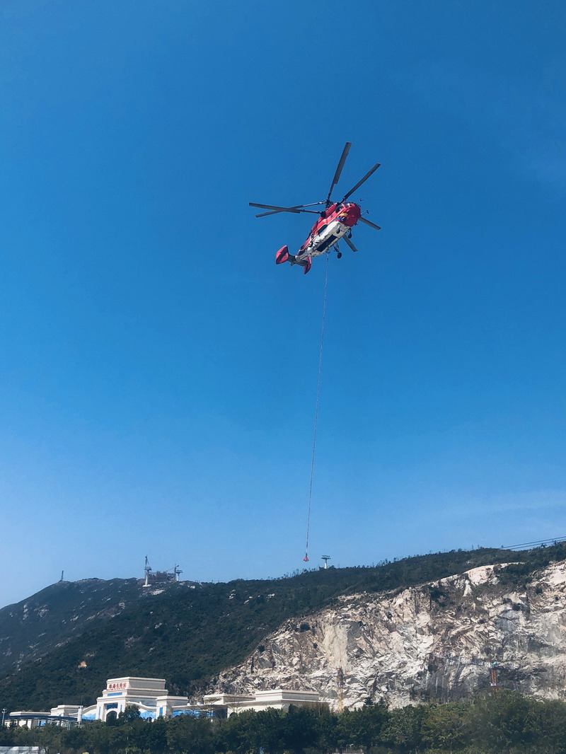此次KA32直升機吊裝驗證飛行,由海直通航與長隆建設(shè)工程有限公司、波馬嘉仕其(北京)索道有限責任公司共同組織開展,三家公司在數(shù)月前就開展驗證飛行進行多次交流探討,對起吊和放貨場地進行多次現(xiàn)場勘查,研究分析技術(shù)難點,制定了詳細的飛行方案和安全預(yù)案。