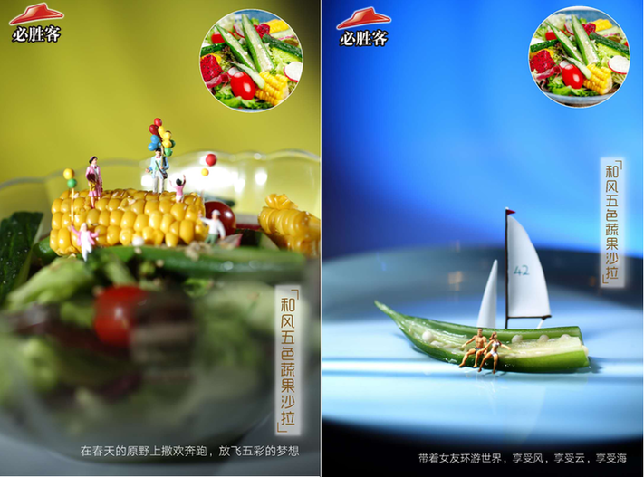 在深圳,必勝客更是腦洞大開,在最新的2018春季菜單,用迷你人偶結(jié)合旅游的場景進(jìn)行創(chuàng)意拍攝。天馬行空的想象,獨特的視角,妙趣橫生,讓人領(lǐng)略美妙“風(fēng)景”的同時,不禁食指大動。