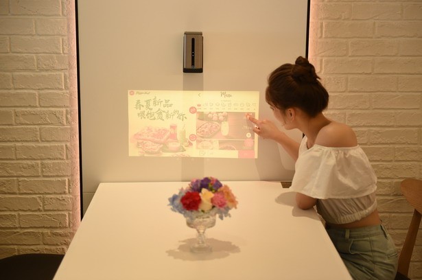 除了“情緒地帶”,智慧餐廳還提供了多元化的互動(dòng)服務(wù)。門店等位區(qū)有一整面具有奇幻動(dòng)感效果的投影互動(dòng)墻,通過獨(dú)特的觸摸啟動(dòng)可以探索必勝客的比薩從原料種植、加工、生產(chǎn),一直到制作成品、奉客、外送等一系列過程,為顧客提供趣味十足的多感官虛擬互動(dòng)體驗(yàn),讓無聊的等位時(shí)間也變得興味盎然。