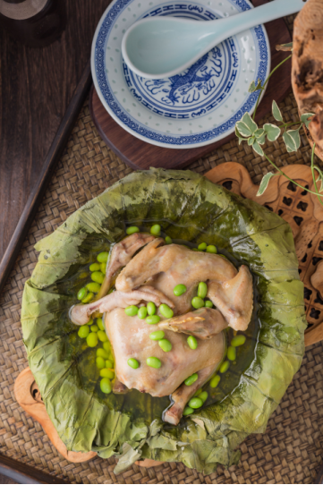 “池塘十里盡荷塘,姊妹朝來采摘忙,不摘荷花摘荷葉,飯包荷葉比花香。”清末民初的這首詞,表明了人們對用荷葉制肴的喜好。選用肉質細嫩的仔雞,以荷葉包裹蒸熟,松軟適口,呈現原汁原味的鮮美,融合荷葉的幽幽清香,細細品味,仿佛回到夢里水鄉(xiāng)。