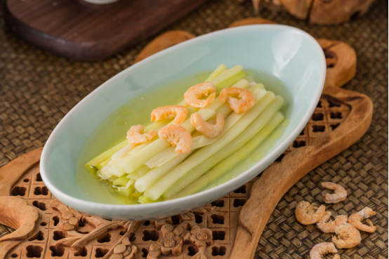 兩千多年前的《詩經》即記有“彼降之坡,有蒲有荷”,水生的蒲菜潔白如玉、味美鮮嫩,采摘卻是費時費力,得來不易。精選淮安特產蒲菜,配以上等金鉤蝦米同烹,細嫩爽口,湯汁清鮮,清香四溢,似有嫩筍之味,為兩淮地域時令名肴。