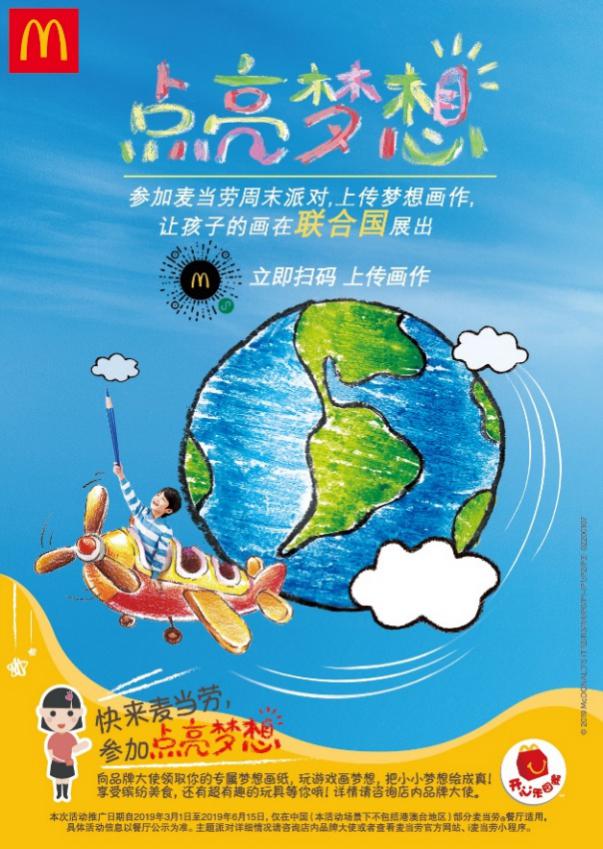 深圳新聞網(wǎng)2019 年4月1日訊 3月1日起, 麥當(dāng)勞在全國(guó)超過(guò)1000家餐廳推出麥當(dāng)勞“點(diǎn)亮夢(mèng)想”主題派對(duì),為孩子們打造夢(mèng)想加油站?;顒?dòng)以“夢(mèng)想”為主題,以繪畫(huà)為載體,鼓勵(lì)孩子們秀出才華展現(xiàn)夢(mèng)想?;顒?dòng)將征選30位兒童的畫(huà)作在聯(lián)合國(guó)展出。