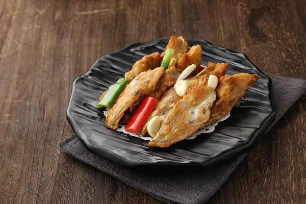 順德勒流名菜之一,明代李時珍認(rèn)為:“鳙之美在于頭”。取鳙魚,即大頭魚的魚頭精華部位——魚嘴入饌,用順德人擅長的煎焗技法使魚頭色澤金黃、鮮香嫩滑。