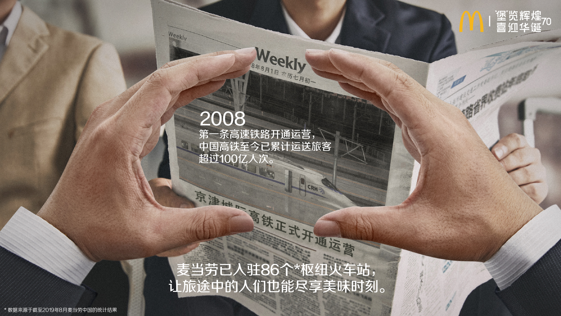 便捷出行,美味隨心:2008年,中國(guó)第一條高速鐵路——京津城際鐵路正式開通。高鐵不僅改變了人們的出行方式,更推動(dòng)了區(qū)域經(jīng)濟(jì)發(fā)展。麥當(dāng)勞已入駐86個(gè)樞紐火車站,為旅客提供便捷美味。