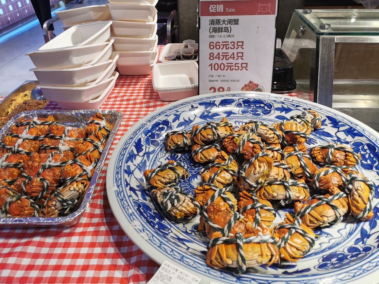 其中爆款非大閘蟹莫屬。民間有個(gè)講究:“九雌十雄”,農(nóng)歷九月吃母的大閘蟹,農(nóng)歷十月吃公的,因?yàn)槟菚r(shí)候大閘蟹的蟹黃和蟹膏是最好的。黃金周期間,盒馬深圳大閘蟹銷量與9月相比增長(zhǎng)六倍。其中最受歡迎的是2兩重的母蟹,盒馬皇庭廣場(chǎng)店假期里試過(guò)一天賣出近兩千只大閘蟹。