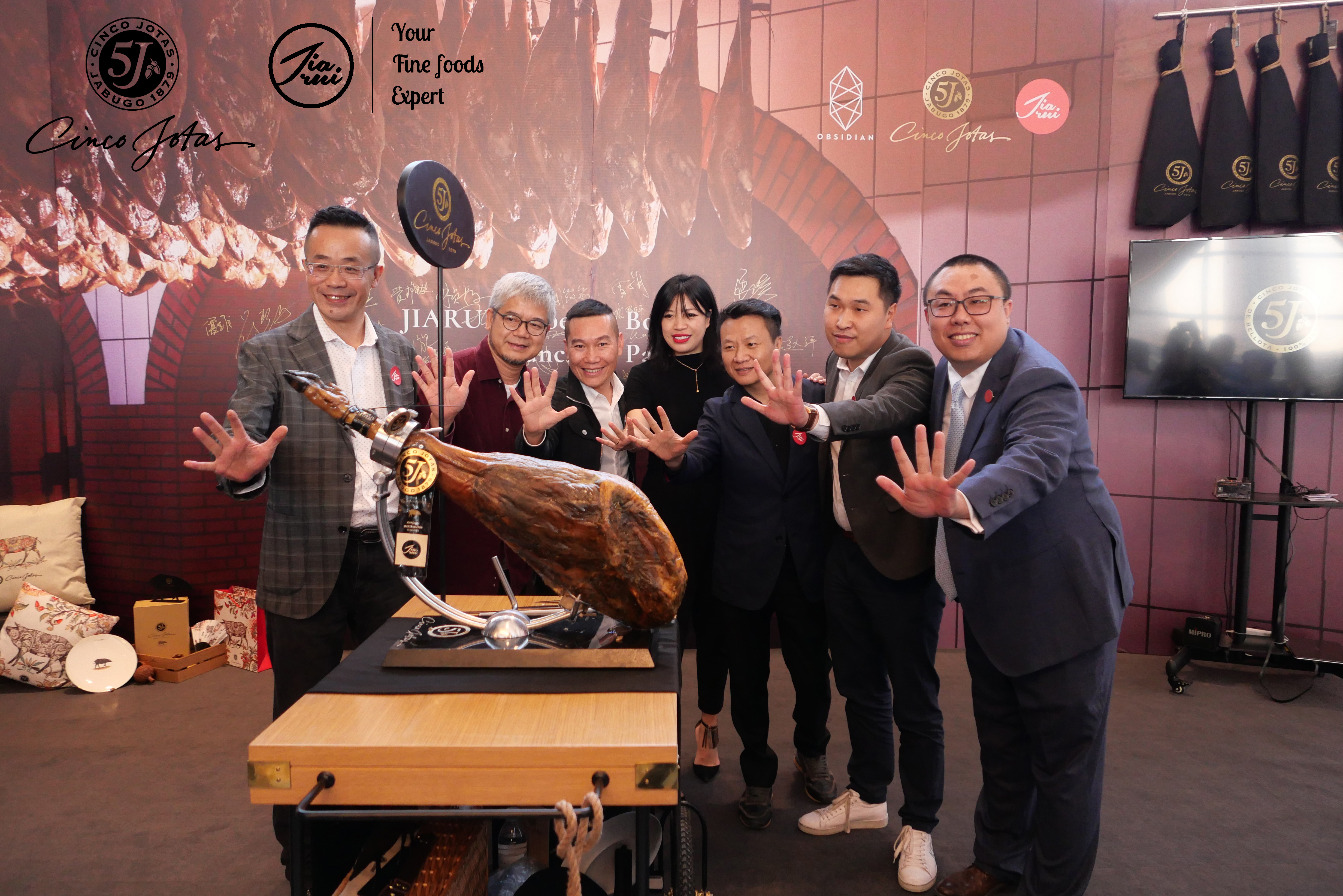 11月28日,深圳佳銳食品有限公司攜手OBSIDIAN BAR和5J品牌在深圳的地標(biāo)-平安金融中心舉行隆重的5j帶骨火腿開關(guān)揭幕儀式;5J的大中華區(qū)銷售總監(jiān)-Selina、深圳佳銳總經(jīng)理-趙斌、OBSIDIAN BAR老板-程子瑞、深圳烹飪協(xié)會(huì)-劉永忠副會(huì)長、蠔門九式創(chuàng)始人-陳漢宗和潮汕美食達(dá)人-林貞標(biāo)一起為南區(qū)第一條帶骨5j火腿做揭幕。