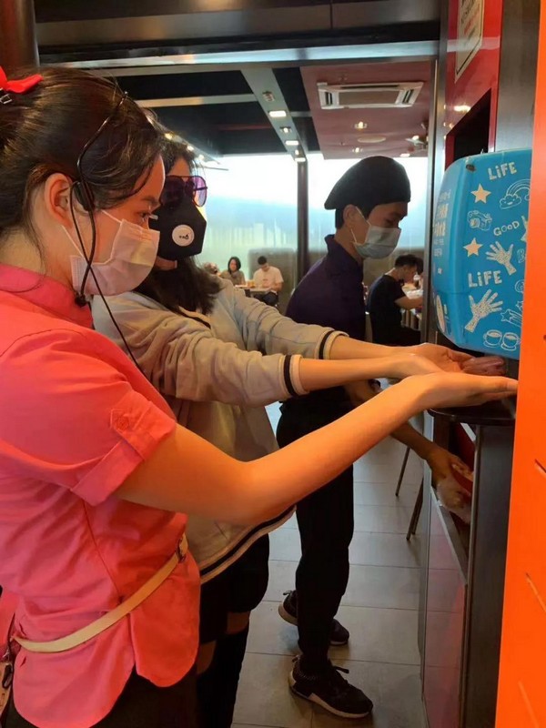目前全國(guó)所有的麥當(dāng)勞餐廳啟動(dòng)上班員工測(cè)溫流程,并提高員工洗手消毒頻次,全國(guó)餐廳全員佩戴口罩。在餐廳為顧客提供免洗洗手液,對(duì)所有餐廳的通風(fēng)系統(tǒng)和顧客常接觸的設(shè)施,強(qiáng)化消毒并增加頻次,包括大門把手、自助點(diǎn)餐屏、樓梯扶手、柜臺(tái)臺(tái)面、取餐區(qū)、桌椅、餐盤、兒童椅、兒童樂(lè)園等。