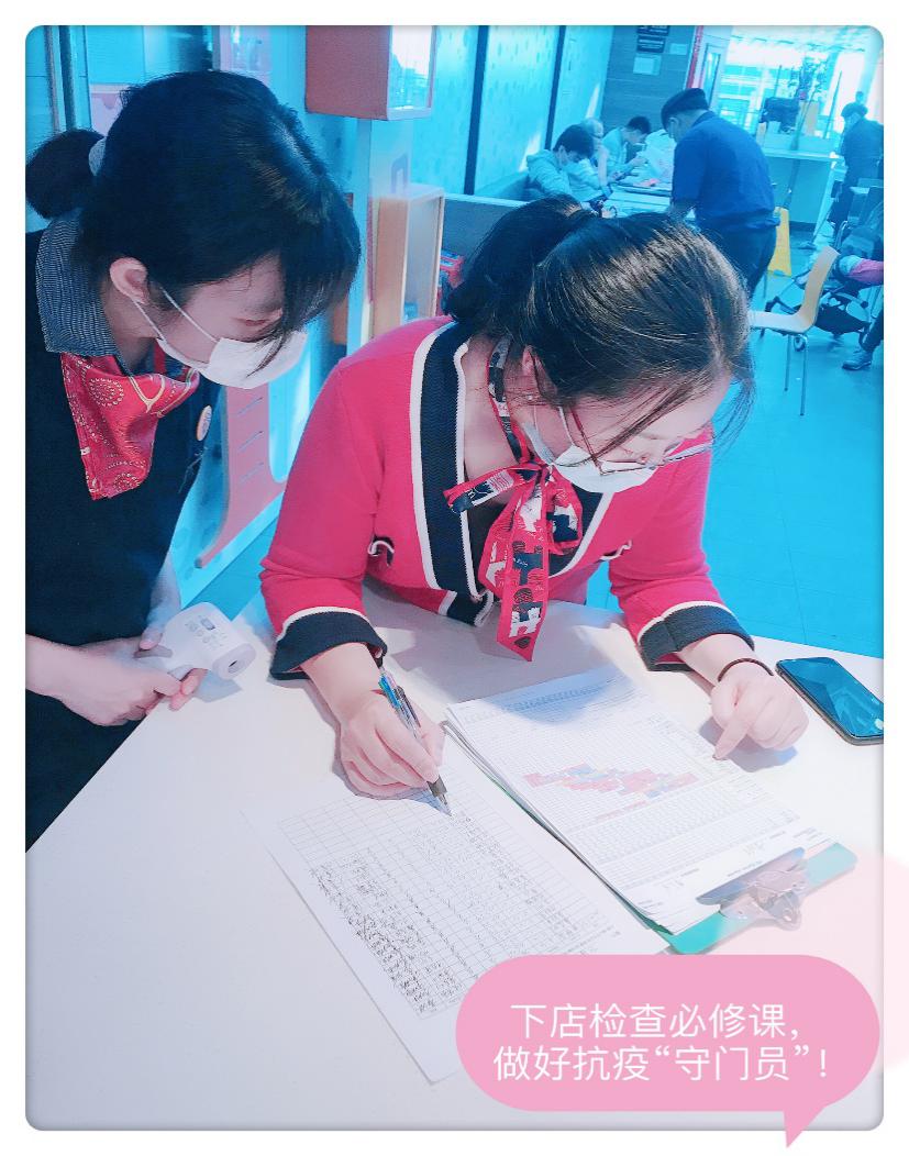 所以,每日的下店檢查是蔡麗麗工作必不可少的一個環(huán)節(jié)。下店檢查時看到的問題,會及時提出和校準。確保轄區(qū)所有餐廳可以無偏差的嚴格執(zhí)行公司的防疫措施。這時的“快”和“嚴”就是“生死時速”。因為,餐廳任何的清潔消毒不到位,都有可能導致員工病毒感染。