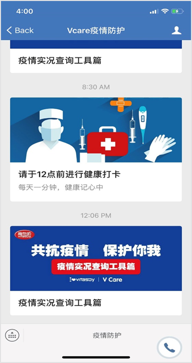 在疫情防控部分,維他奶準(zhǔn)備充足,全力保障每一位員工的健康和安全。首先,利用企業(yè)微信,維他奶建立每日健康監(jiān)控機(jī)制,持續(xù)追蹤全體員工健康狀況。其次,公司利用微信小視頻等媒體工具制作防控指引和要求,讓員工掌握防控知識和防控要求。除了必不可少的佩戴口罩、測量體溫、健康問詢登記和辦公場所和生產(chǎn)區(qū)域的消毒工作外,維他奶還建立全方位覆蓋的防控組織和應(yīng)急預(yù)案,設(shè)立疫情防控專員,鼓勵職能部門的員工使用在線會議等溝通工具以減少近距離接觸,實(shí)現(xiàn)工作會議和防疫安全的兩不誤。