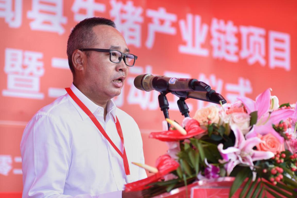 現(xiàn)場(chǎng)還舉行了二期項(xiàng)目動(dòng)工儀式。據(jù)介紹,二期項(xiàng)目位于前山鎮(zhèn)黃桐樹嶺,由生活區(qū)、生產(chǎn)區(qū)、有機(jī)物資源中心組成,主要建設(shè)內(nèi)容包括:2條閉群自繁自育一體化樓層飼養(yǎng)模式生產(chǎn)線,合計(jì)年出欄商品豬36萬頭,預(yù)計(jì)2021年5月投產(chǎn),2022年6月出欄商品豬。