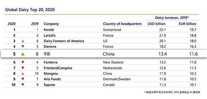 中新網(wǎng)9月1日電 近日,中國乳業(yè)曝出一個令國人欣喜的消息:在荷蘭合作銀行公布的“2020年全球乳業(yè)20強”排名中,中國伊利集團排名飆升至第五,成功躋身全球乳業(yè)五強。