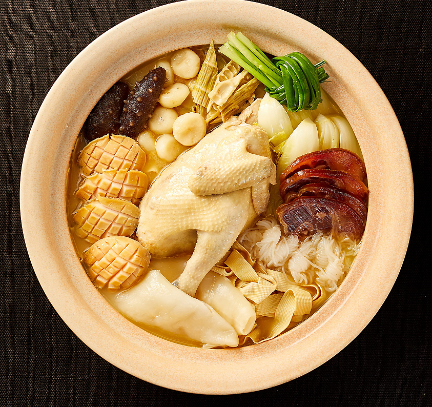 “凍齡”爸爸秘制花膠雞采用天然泉水湯底和原生態(tài)雞材,無味精無添加。除了招牌花膠雞煲之外,還有豪華版的鮑魚花膠雞煲、海參鮑魚花膠雞煲及眾多創(chuàng)意精美的小菜小食。