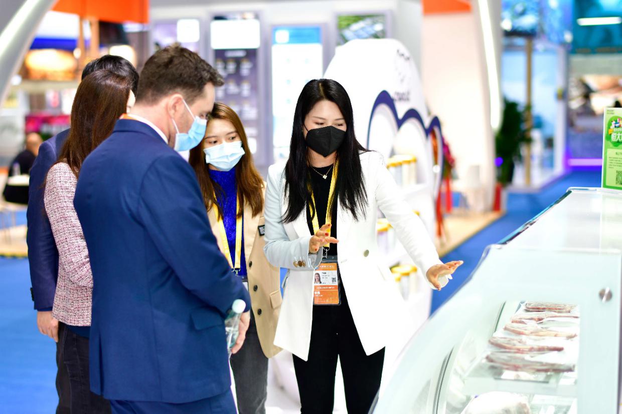 恒大農(nóng)牧集團(tuán)領(lǐng)導(dǎo)王潔瓊女士為新西蘭商務(wù)領(lǐng)事 Richard Dunsheath介紹PRM牛羊肉產(chǎn)品亮點(diǎn)