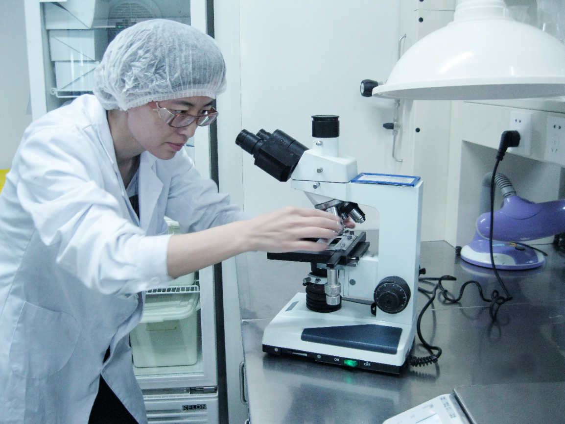 孟根花在進(jìn)行產(chǎn)品微生物檢測(cè)