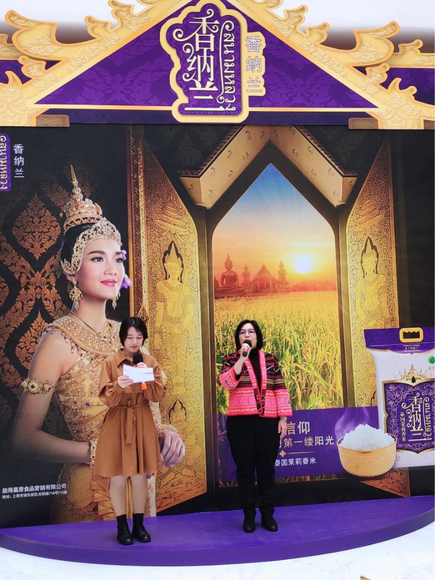 12月7日,香納蘭“泰”好吃樂(lè),陽(yáng)光之旅/益+秀新米品鑒展示活動(dòng)在上海金龍魚大廈隆重舉行,益海嘉里集團(tuán)特邀泰王國(guó)駐上??傤I(lǐng)事館農(nóng)業(yè)處領(lǐng)事吳佩賢女士參加活動(dòng)并致辭助力香納蘭,本次活動(dòng)形式豐富多彩,不僅有干貨十足的泰米知識(shí)介紹和專業(yè)泰廚現(xiàn)場(chǎng)教學(xué),還有美味的泰米試吃和有趣的互動(dòng)游戲。與此同時(shí),本次活動(dòng)將通過(guò)線上直播擴(kuò)大傳播范圍,讓更多消費(fèi)者了解香納蘭品牌的同時(shí)也能感受到獨(dú)特的泰國(guó)文化魅力。為了讓中國(guó)消費(fèi)者更進(jìn)一步了解泰國(guó)茉莉香米在泰國(guó)人民心目中的地位,泰國(guó)領(lǐng)事吳佩賢女士在直播間和粉絲做了短暫的分享。