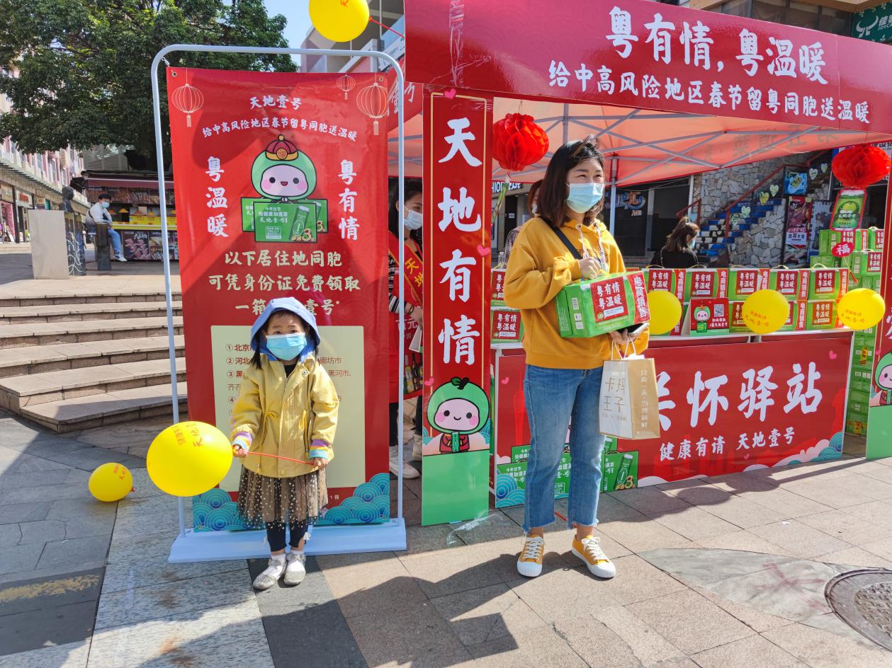 據(jù)了解,天地壹號(hào)在廣東市場(chǎng)開(kāi)展的“粵有情粵溫暖”公益活動(dòng),2月1日至2月3日,將在廣州、深圳、東莞、佛山、中山、珠海、惠州等7個(gè)珠三角城市22個(gè)區(qū)鎮(zhèn)的中心地帶開(kāi)設(shè)“關(guān)懷驛站”,共準(zhǔn)備了近3萬(wàn)份健康禮包?!拔覀?cè)诰〇|還準(zhǔn)備了2000萬(wàn)元的親情補(bǔ)貼券,如果大家想家了,可以領(lǐng)取這份親情補(bǔ)貼,為家人寄去思念和祝福?!鄙鲜鲐?fù)責(zé)人說(shuō)。