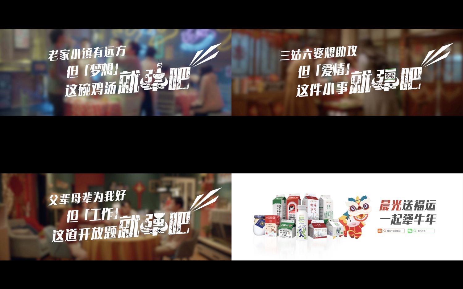 1月29日,晨光乳業(yè)《就犟吧》賀歲TVC微信、朋友圈正式上線,就春節(jié)熱門話題“結(jié)婚、找穩(wěn)定工作、要不要外出追夢”進(jìn)行了生動演繹。在熱鬧喜慶的年節(jié)氛圍中,趣味反轉(zhuǎn)的劇情,形象展現(xiàn)了新一代年輕人對于工作、愛情、夢想“不服輸、敢堅(jiān)持”的態(tài)度。